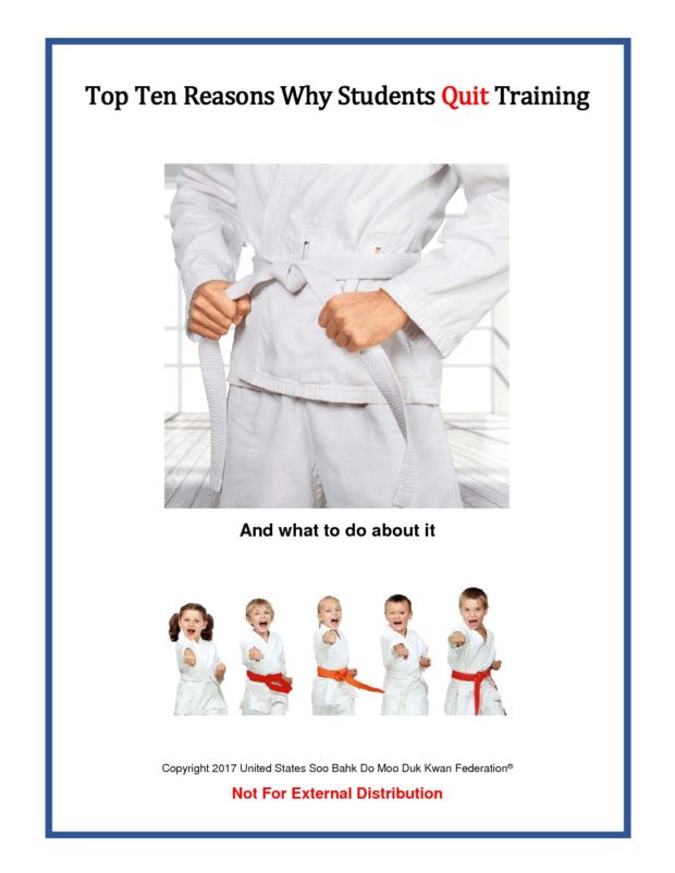 Well, we asked thousands of former students and ex Federation members why they quit training and guess what? THEY TOLD US! Hundreds of non-member, former students responded (boy were we surprised!) and they shared The Top Ten Reasons that they quit training.