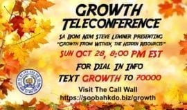 Growth Teleconference facilitator, Master George Broyles has invited SteveLemner Sa Bom Nim to present an information-packed Growth Teleconference on Sunday, October 28 at 8:00 PM EST.
